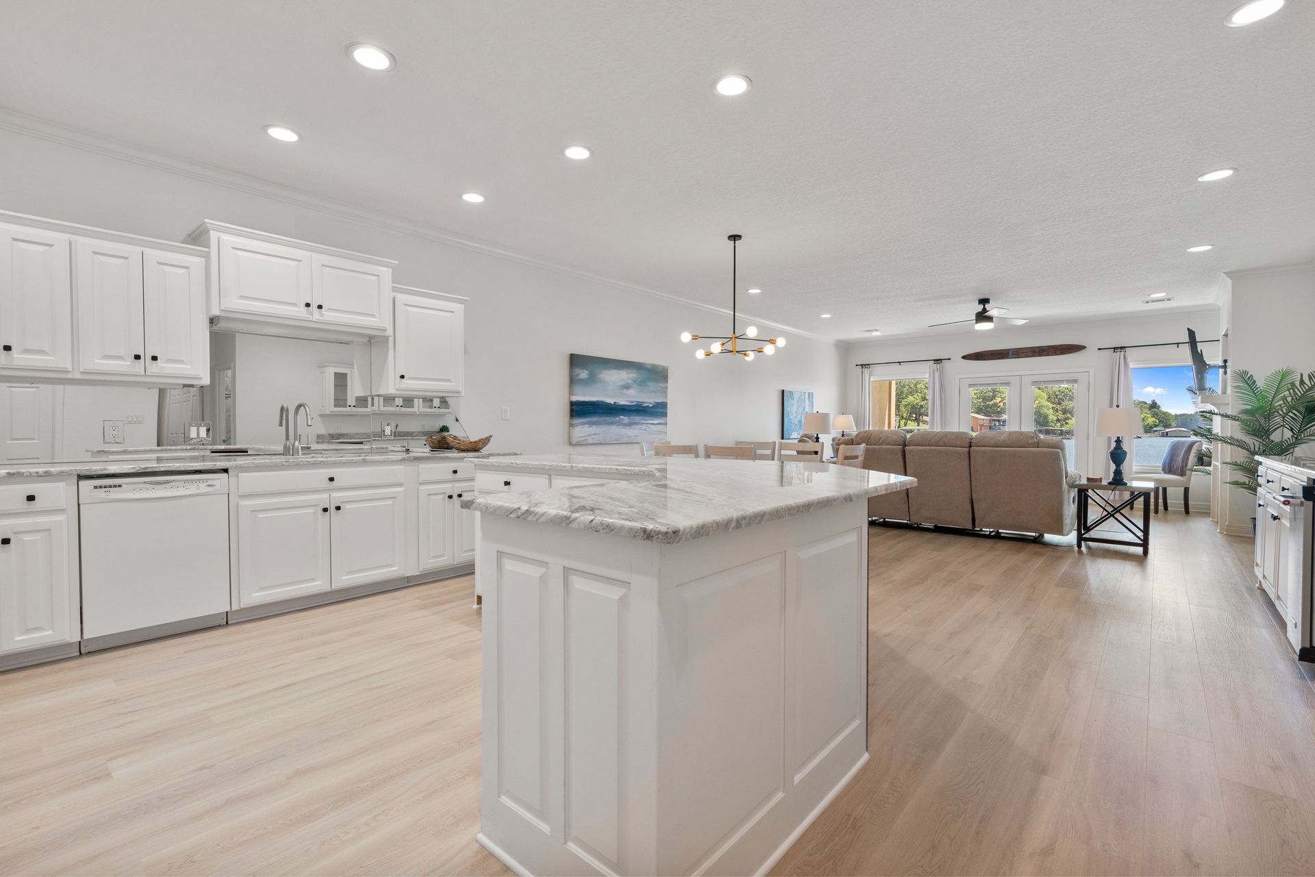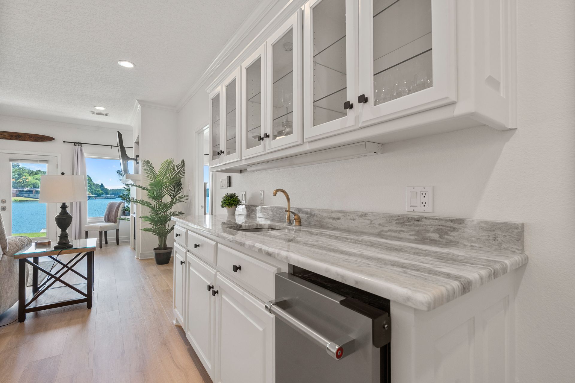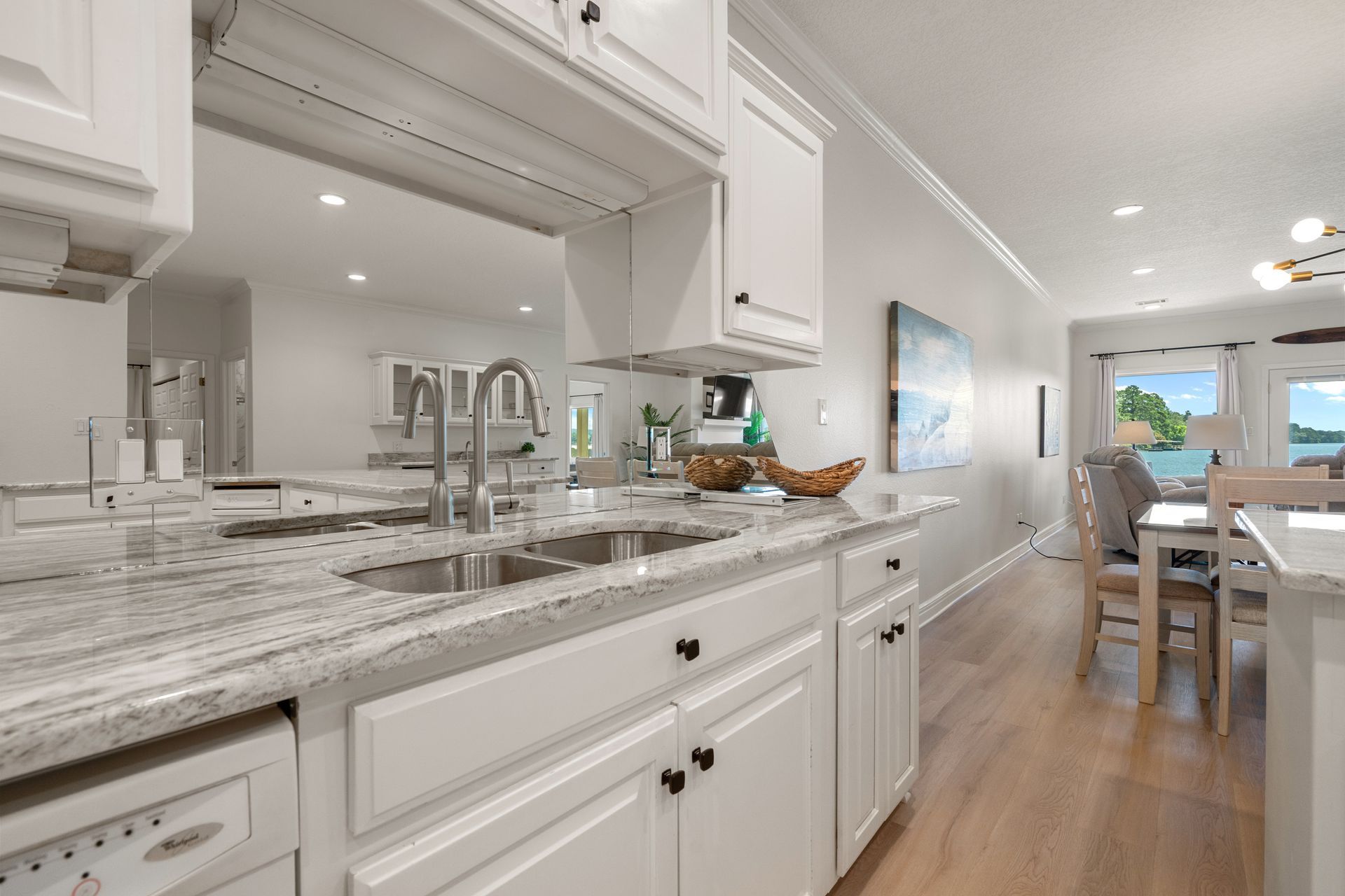LEVEL ENTRY & Lake Front- this beautifully updated condo is in cove with beautiful views!! This condo will not disappoint! It is 2 bedroom with both bedrooms having king size beds, 2 bathrooms with an open concept feel and vaulted ceilings that make it spacious and cozy. You can walk out from your patio doors to the boardwalk along the lake, enjoy coffee with break-taking sunrises on the patio area or cool off in the communal pool. There is a boat slip that comes with this unit.